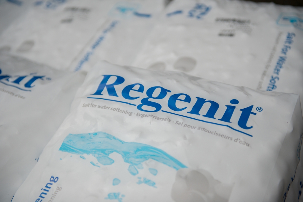 Regenit zouttabletten bestaan uit zeer zuiver, volledig oplosbaar ingedampt zout en garanderen zodoende de efficiënte en storingsvrije werking van de wateronthardingsinstallatie.