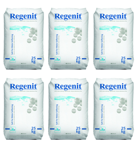 Regenit zouttabletten bestaan uit zeer zuiver, volledig oplosbaar ingedampt zout en garanderen zodoende de efficiënte en storingsvrije werking van de wateronthardingsinstallatie.